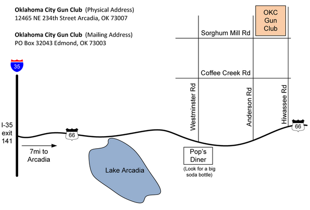 The Range is located north of the town of Arcadia, east of Edmond. From I-35, take Exit 141, which is the old route 66 eastbound. Arcadia is approximately 7 miles.